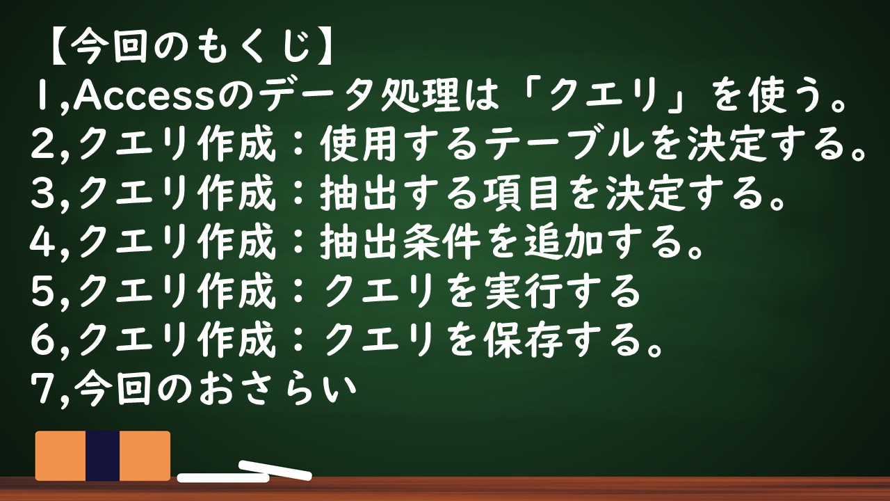 さて、今回の内容は、Accessでのデータ処理のキモとなる「クエリ」についてです。