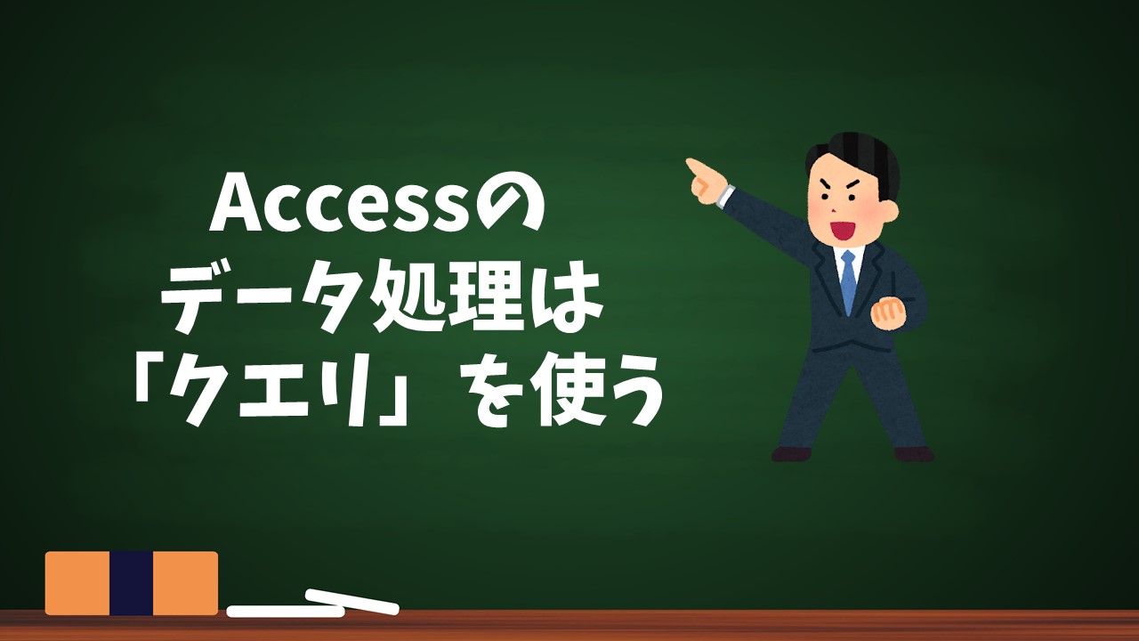 Accessにてデータ処理をする場合、多くは「クエリ」を使用します。クエリは「テーブル、つまりデータに対して操作を行う役割」を担っています。クエリには、Excelのフィルタ機能や並べ替え機能と同じような機能がありますので、扱い方さえ知ってしまえばそこまで難しいものではありません。