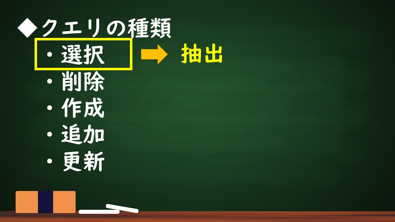 ここでは「クエリとは、テーブルの操作を行うAccessの機能」とだけ覚えておきましょう。