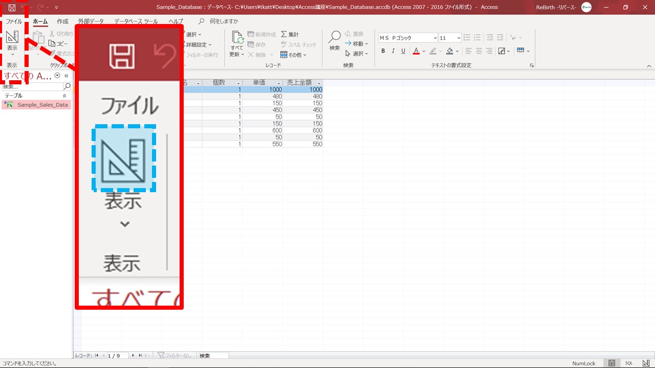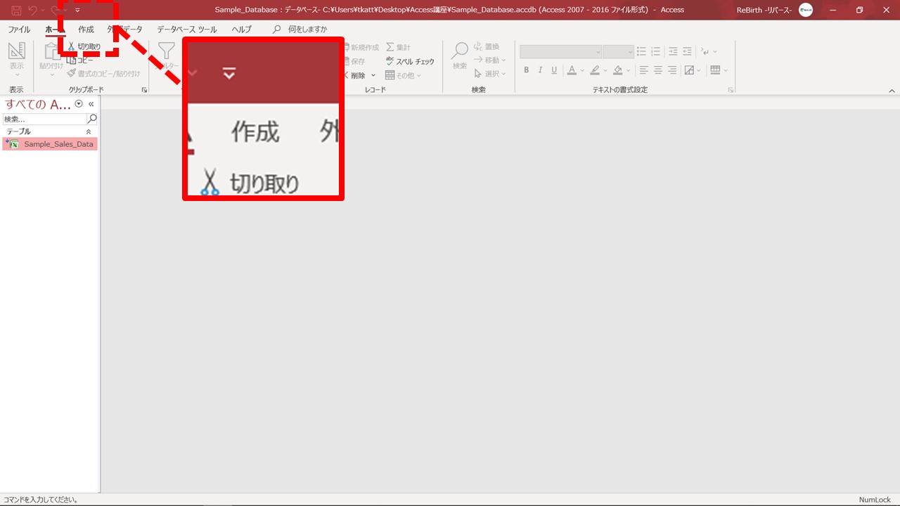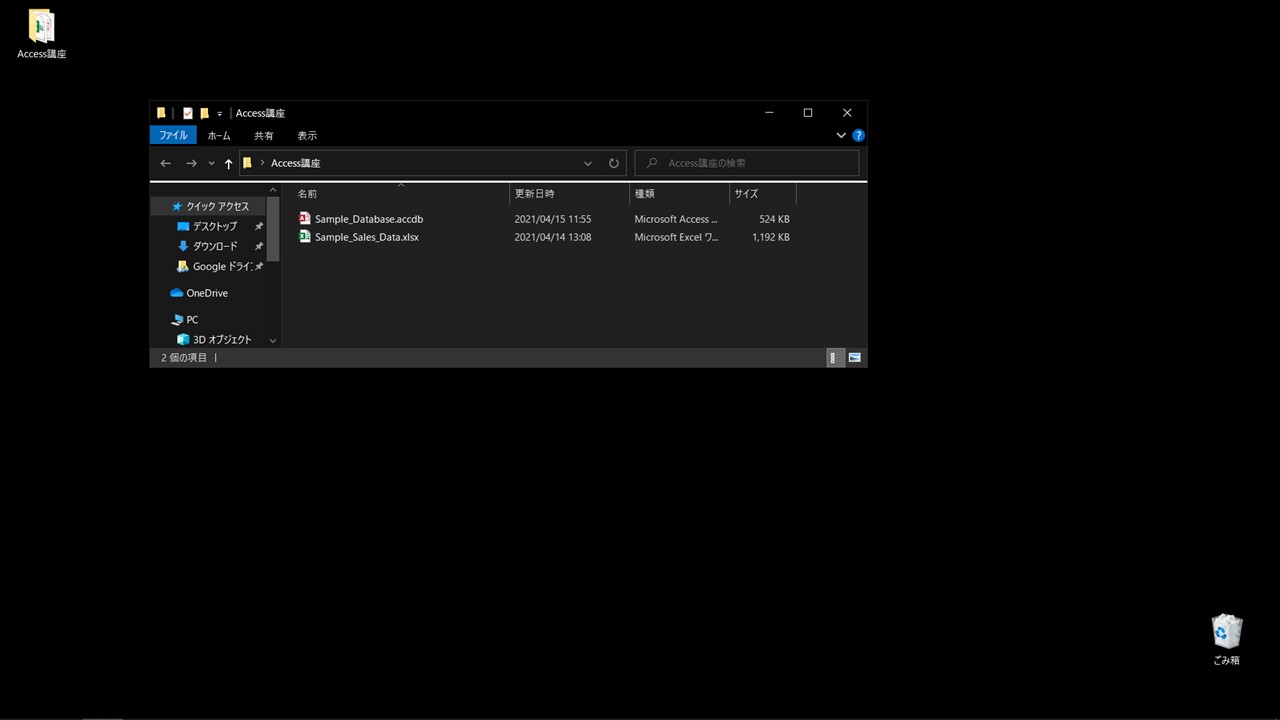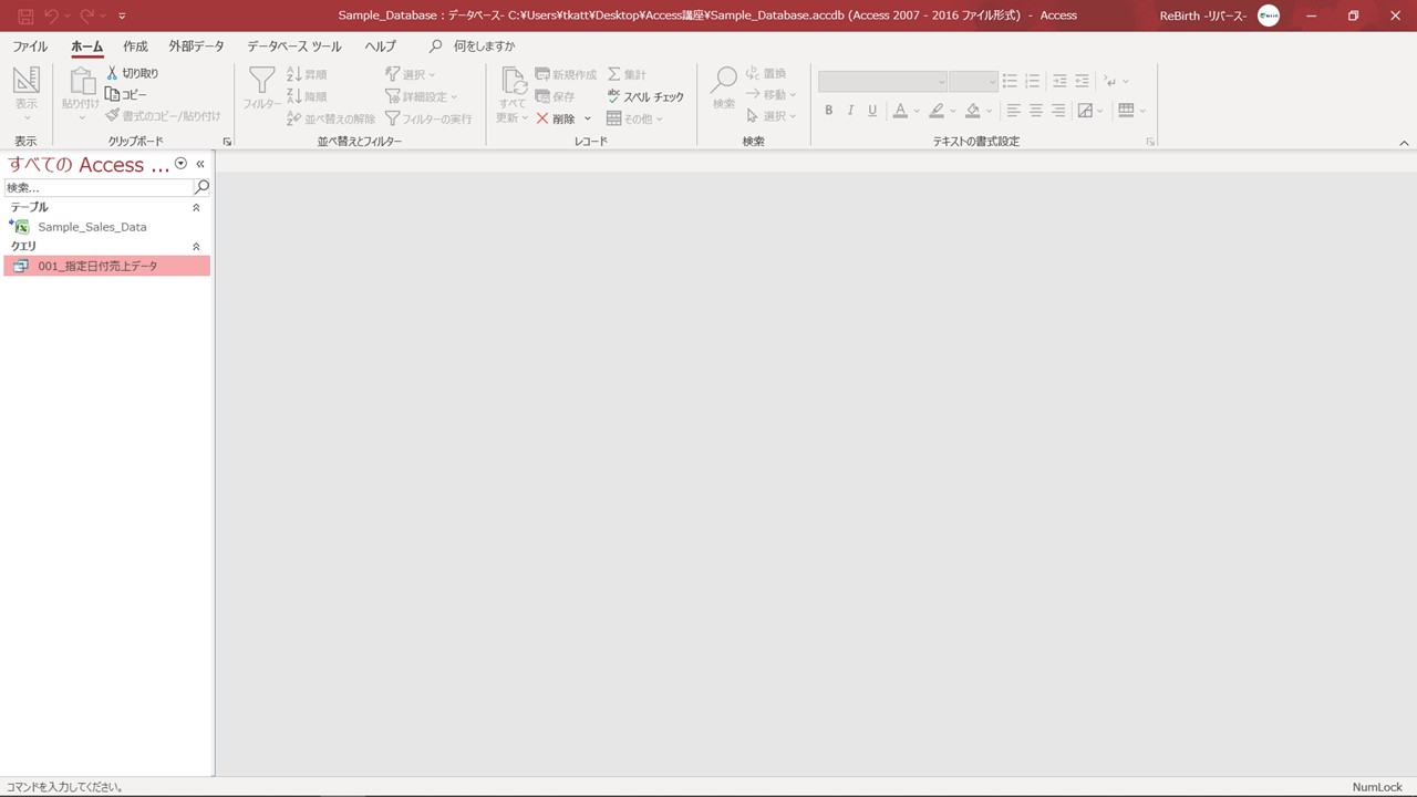 デスクトップのAccess講座フォルダより、「サンプルデータベース」を起動させてください。