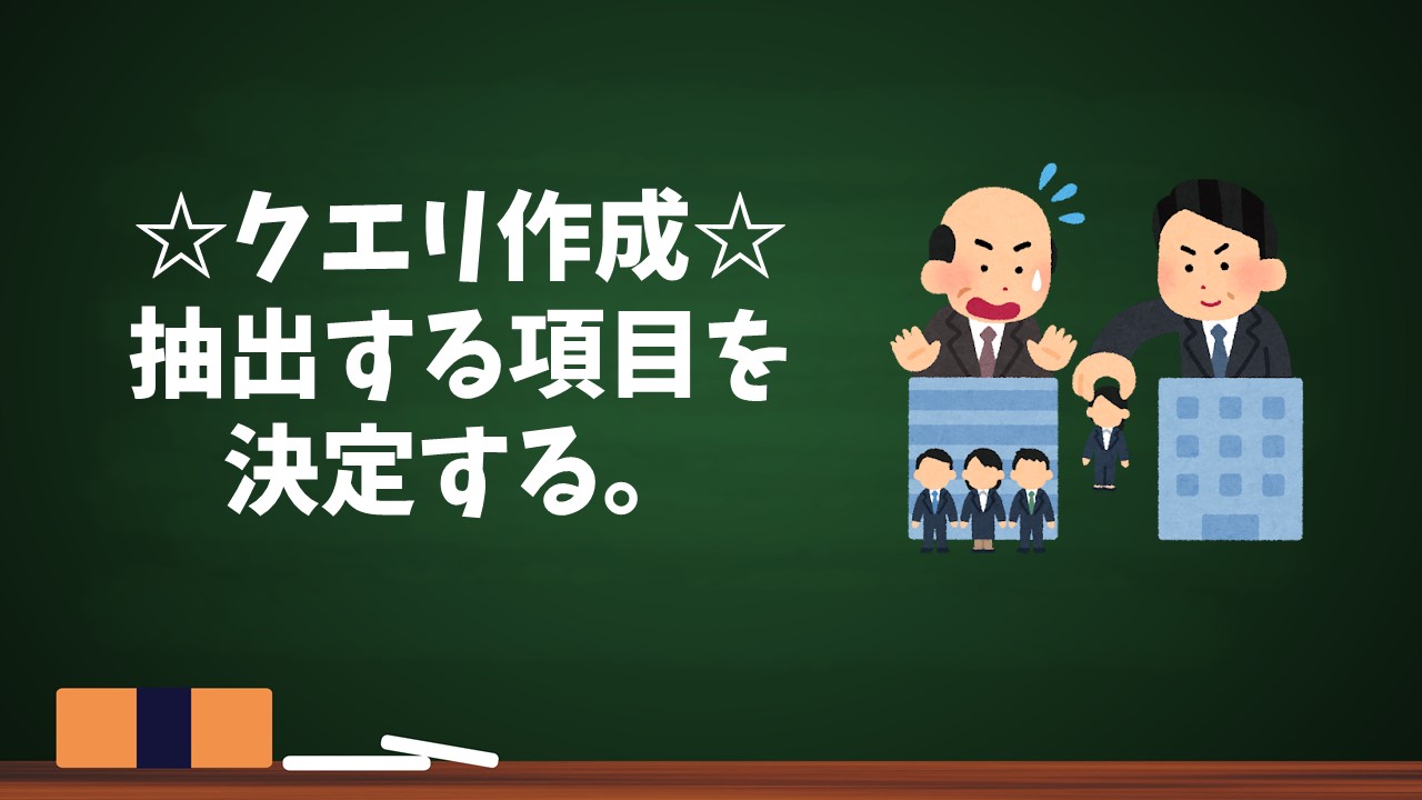 の6項目とします。これらを抽出できるようにクエリを操作していきます。