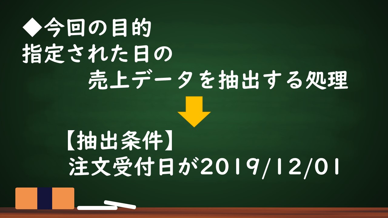 繰り返しですが、今回の目的は「指定された日の売上データを抽出する処理」です。