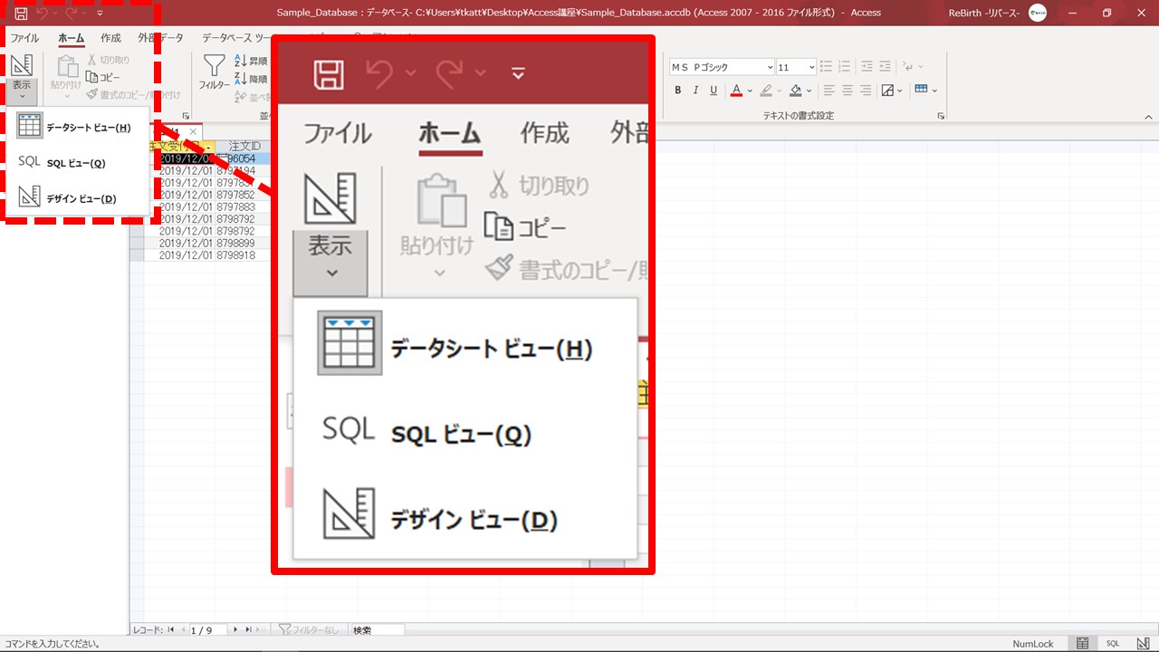 もうひとつ「SQLビュー」がありましたが、ちょっと専門的な話になるので、ここでは説明を割愛します。
