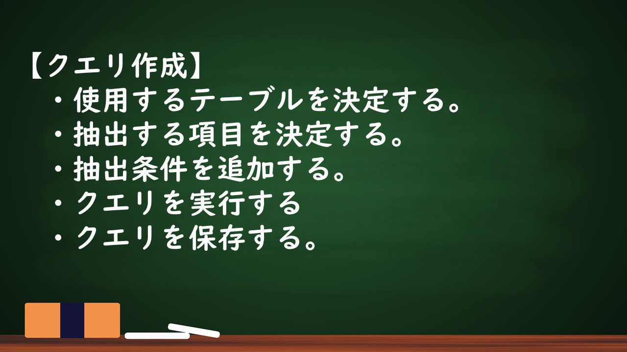 Accessでは、先ほど説明したようにそれらの処理を「クエリ」で行います。